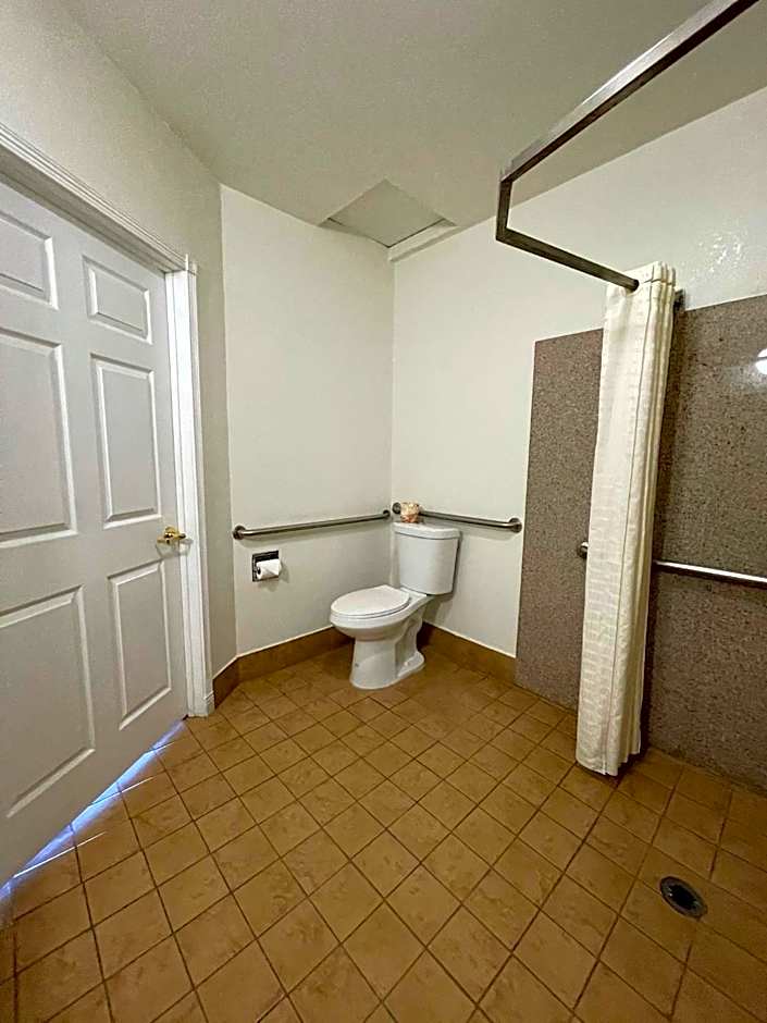 At the Palm Tropics Motel, guests can choose from a variety of room types. The King Room with Roll-In Shower is available for guests with disabilities and can accommodate 2 adults. There is a Queen Room with Two Queen Beds that has a larger room size and can accommodate 4 adults. Additionally, there is a regular King Room that can accommodate 2 adults. Smoking is not allowed in any of the rooms.