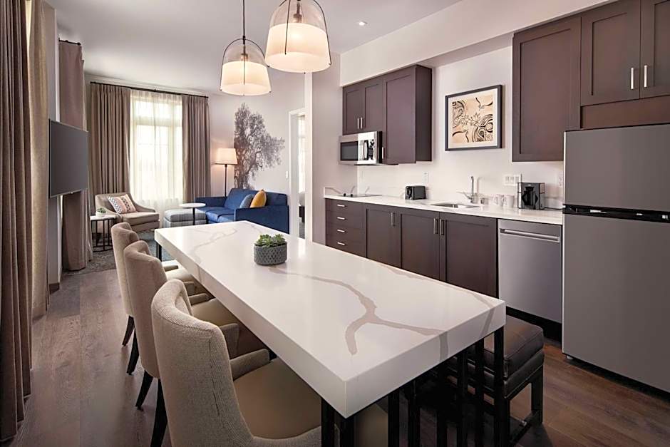The hotel offers a variety of room types including 1 Bedroom Suites with a King bed and a Sofa bed, Studios with a King bed and a Sofa bed, King Studios with Sofa Bed - Hearing Accessible, King Studios with Sofa Bed and Courtyard View, 2 Bedroom Suites, and 1 Bedroom Suites with 2 Queen beds and a Sofa bed. The rooms range in size from 431 sqft to 710 sqft and can accommodate between 4 adults and 3 children to 6 adults and 5 children. Smoking is not allowed in any of the rooms.