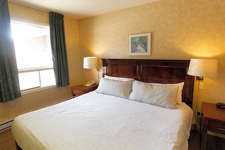 This studio features a private patio or balcony overlooking lush courtyards, Foss Creek and the distant mountains. It includes a comfortable couch for lounging. The king beds are covered in organic custom linens. Bathroom has a Japanese inspired plunge tub, signature all-natural bath products and organic towels.
