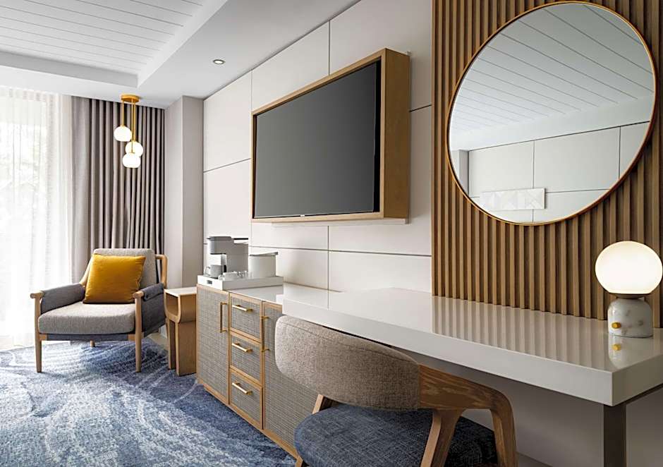 Offering an ocean view, this air-conditioned hearing accessible room features guest bathrobes, designer bath amenities, a 42-inch HD plasma TV, an over-sized desk, an iHome docking station and a coffee machine.