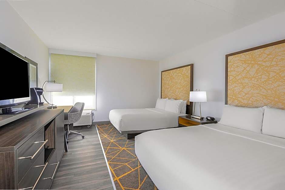 The Holiday Inn La Mirada near Anaheim offers a variety of room types, including King Suites with Sofa Beds, Executive Double Rooms with Two Double Beds, King Rooms, Standard Rooms, Double Rooms with Two Double Beds and Mobility Accessible Tub, King Rooms with Mobility Accessible Roll-In Showers, Queen Rooms with Two Queen Beds, and King Rooms with Sofa Beds. All rooms are non-smoking and have a room size of 301 sqft. The occupancy ranges from 2 adults and 1 child to 4 adults and 3 children. Bed sizes include King, Double, and Queen.