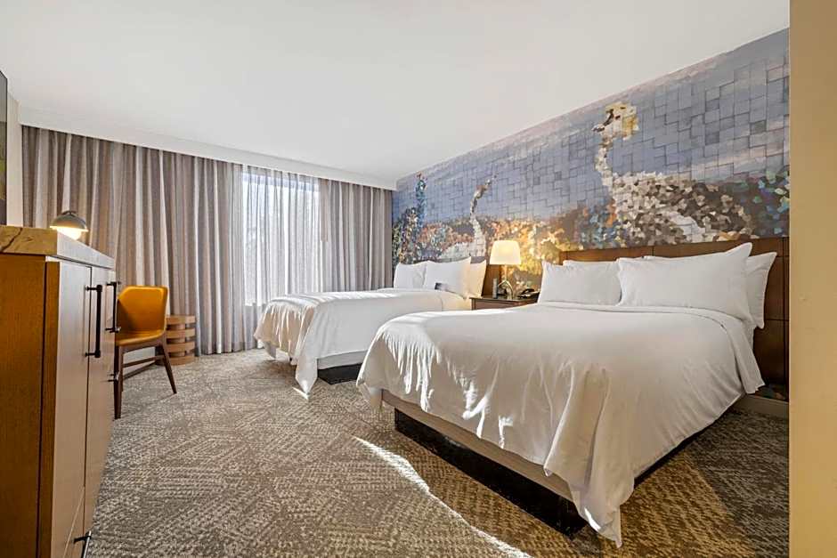 For downtime, an outdoor heated pool and a sun deck provide relaxing options in the sunshine. The on-site Hills Cafe serves American cuisine in a family-friendly, modern setting, perfect for casual meals. Entertainment includes free live music performances, a streaming service for on-demand viewing, and a bar to unwind after a day of exploring. Practical touches include a private entrance and parking options (private and on-site parking, both with extra charges).