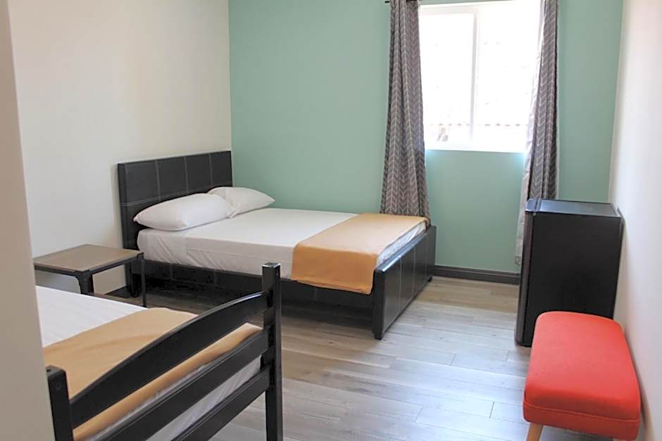Room configurations span dormitories and private-style stays, including Dormitory, 8 Bed with a single Twin bed; Standard Room featuring a Twin bed and a Double bed; and Room - 3 Twin with three Twin beds. There are also dorm options like Dormitory, 6 Bed, Female Only; Dormitory, 1 Twin, Male Only; and Dormitory, 1 Twin, Bunk Bed, Female Only. Additional choices include Room - 2 Twin (accommodates 2 adults and 1 child), Budget, 2 Twin (accommodates 2 adults and 1 child), and Quadruple Room, Pool View (accommodates 2 adults).