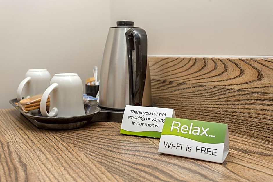 A flat-screen cable TV is featured in this room. A small fridge, microwave, and coffee and tea-making facilities are provided. An private bathroom with an disability access bath tub is also provided.