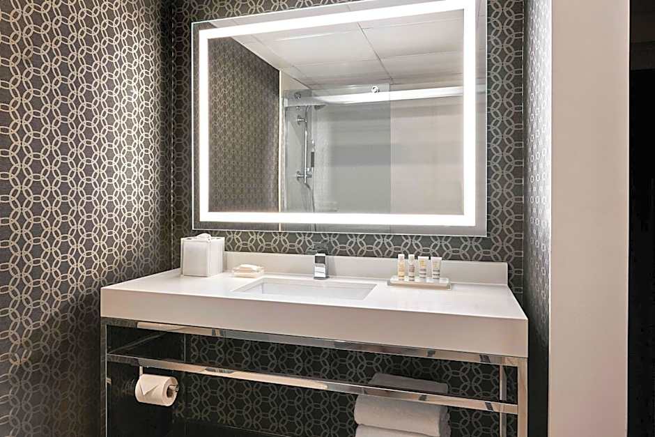 On-site dining offers four options: JW's Steakhouse (steakhouse), Hangar 18 Bar + Kitchen (American), Social Market and Eatery (American), and Starbucks. After a travel day, these spots cover a range from hearty dinners to casual coffee breaks. The outdoor pool is heated for a refreshing dip, with a sun deck and terrace nearby to soak up the sun. It’s a relaxed spot to unwind between flights or meetings.