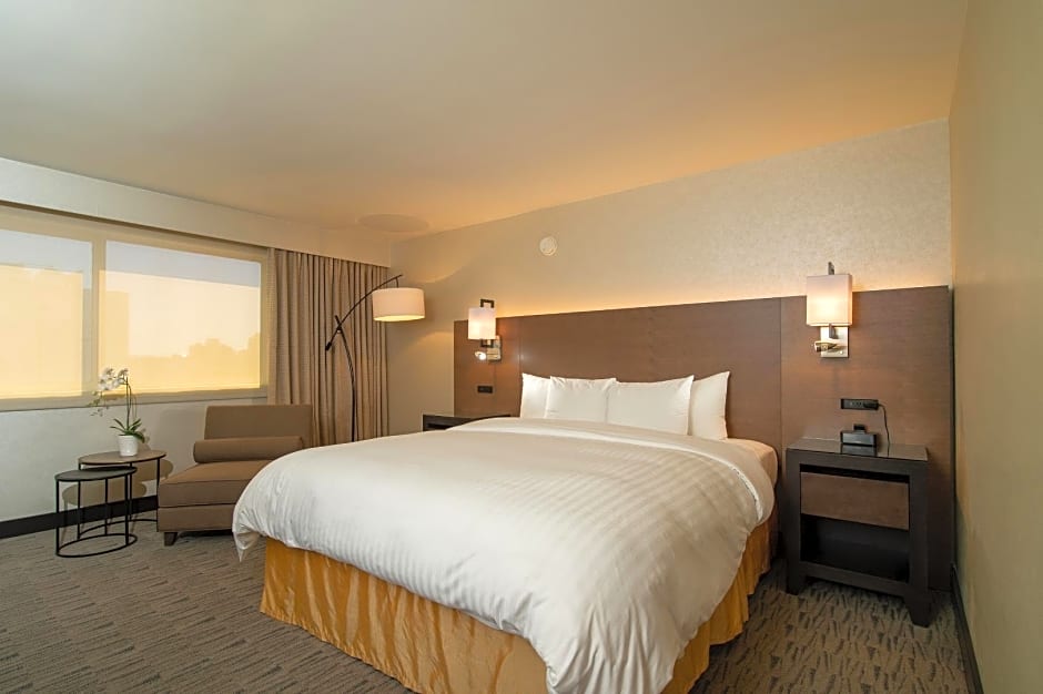 Some of the light fixtures in the room didn't work. There were very minor stains on some of the beddings. The need to pay for in-room amenities like water bottles seemed to contradict the fact that the downstairs convenience store offered free temperature-controlled water. The wifi connection was hit-or-miss. The need to use the neighboring parking structure when valet parking is full leads to uncertainty when estimating how much parking will cost for the duration of the stay.