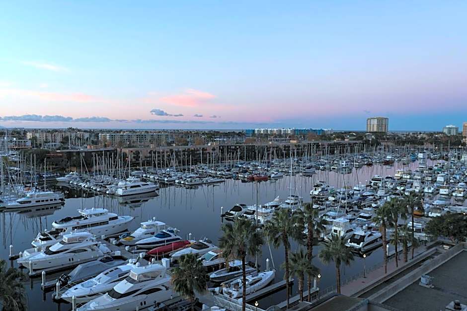 Featuring partial Marina and Pacific Ocean views from a private balcony, this room offers access to the Club Lounge, featuring a variety of free meal options, a computer station and seating area, and special dedicated concierge services.