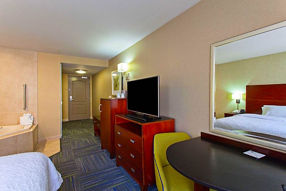 Lastly, if you're looking for a touch of luxury and relaxation, consider the King Studio with Whirlpool - Non-Smoking or the King Studio - Non-Smoking. Both rooms offer a generous size of 355 sqft and can accommodate three adults and two children. Unwind after a long day of exploring by soaking in the whirlpool or lounging in the comfortable king-size bed. Whichever room you choose, you can expect a comfortable and enjoyable stay at Hampton Inn and Suites Merced.