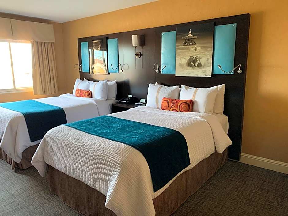 Offering a larger room with a balcony (upon request), vinyl record player, bathrobes, refrigerator, microwave, in-room coffee, APP streaming, 40" TV with HD cable channels, USB outlets, free WiFi, ECO friendly water bottles, air-conditioning, safe and work desk. Free parking night of stay, guest paid Grab-n-Go continental breakfast and mixed cocktails, beer and wine. Public paid airport shuttle nearby.
