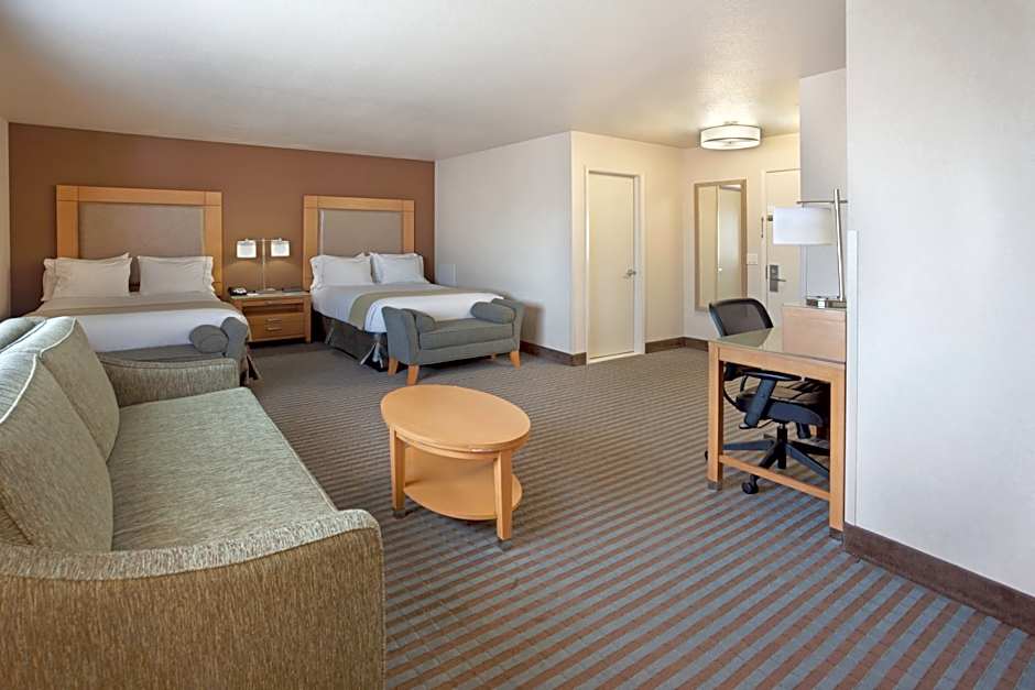 The Holiday Inn Express Monterey - Cannery Row offers a variety of room types including Deluxe Double Rooms with Two Double Beds, King Rooms, Room Selected at Check-In, Double Rooms with Two Double Beds, and Deluxe Rooms. The rooms range in size from 301 sqft to 323 sqft and can accommodate between 2 and 6 adults, with additional space for children. Smoking is not allowed in any of the rooms. The beds vary from Double beds to King size beds, with some rooms also featuring Sofa Beds and accessibility options for individuals with disabilities.