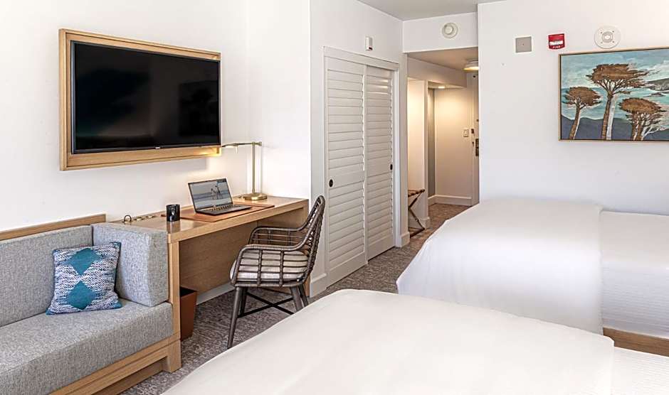 Two on-site dining options invite guests to linger over meals without stepping outside. Jacks Monterey offers American fare in a family-friendly, traditional setting, while Peter B’s serves American classics. A terrace provides fresh-air moments, and the outdoor heated pool offers free, adults-only swimming for a splash after exploring Monterey.