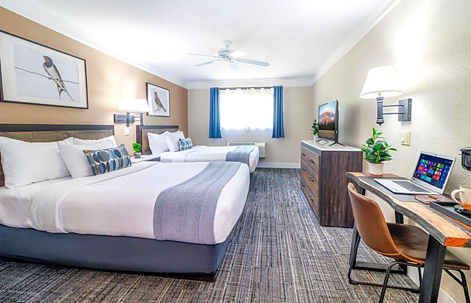 Upgraded to a "family room" with separate King bed room, and room with 2 Queen beds (though I only needed 1 bed)! Lovely room. Comfortable bed. $25 pet fee (reasonable). Electronic locks. Helpful staff even with check-in past 11pm.