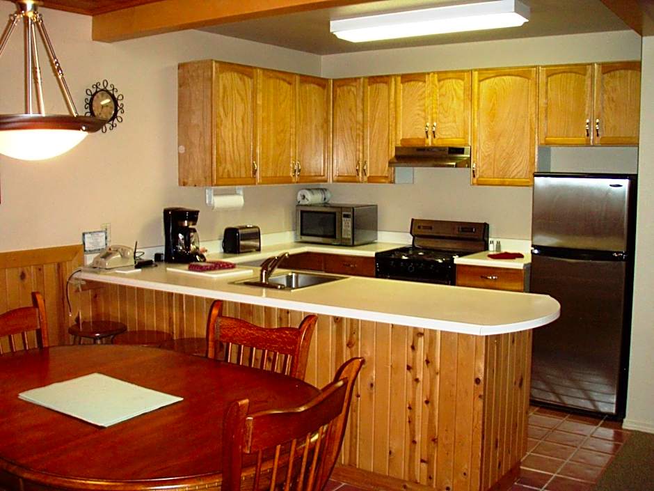 Provides a separate bedroom, a fully equipped kitchen and a gas log fireplace. 1,150 square feet.