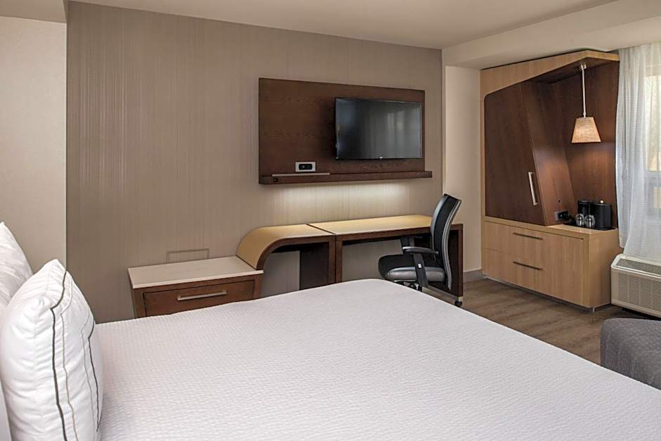 The Courtyard by Marriott Temecula Murrieta offers a variety of room types including Large Queen Rooms with two queen beds, One-Bedroom King Suites with a sofa bed, King Rooms with a sofa bed, and large King Rooms. All rooms are non-smoking and can accommodate multiple adults and children. The bed sizes range from queen to king, and some rooms are equipped with adapted tubs for mobility accessibility.