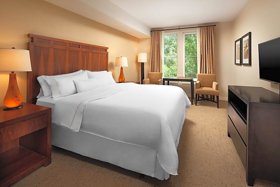 The Westin Verasa Napa invites culinary curiosity with two on-site dining stars. La Toque Restaurant serves French cuisine in a romantic setting, while BANK Cafe and Bar offers modern American fare for a more relaxed vibe. An outdoor pool adds a splash of resort luxury: a heated, saltwater pool open all year for adults only. For downtime between meals, outdoor spaces like the terrace, garden, sun deck, and beach chairs invite soaking up Napa’s warm sun and scenic surroundings.