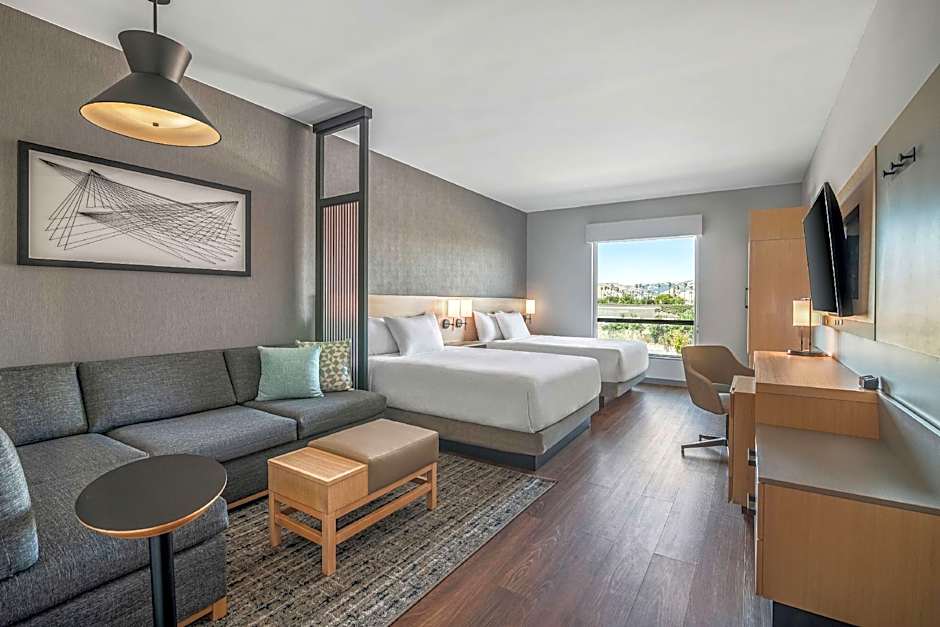 The Hyatt Place Newark-Silicon Valley offers a variety of rooms including King Rooms with Sofa Beds, Queen Rooms with Two Queen Beds and Sofa Beds, and Specialty King Rooms. The rooms are non-smoking and have a range of occupancy capacities, accommodating between 3 to 6 adults. The bed sizes include King and Queen size beds, along with additional sofa beds in most rooms. Room sizes range from 366 to 431 square feet.