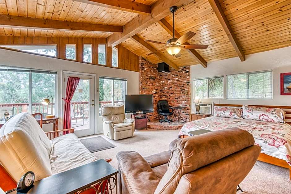 The room itself was cozy. Mattress and bedding were comfortable. Mini fridge in the room and bottled water much appreciated. The tub was nice and deep. Over all I was very comfortable in the bedroom. The wild life around the property is also really a highlight of this space. We saw a family of about 20 quail just taking a stroll.