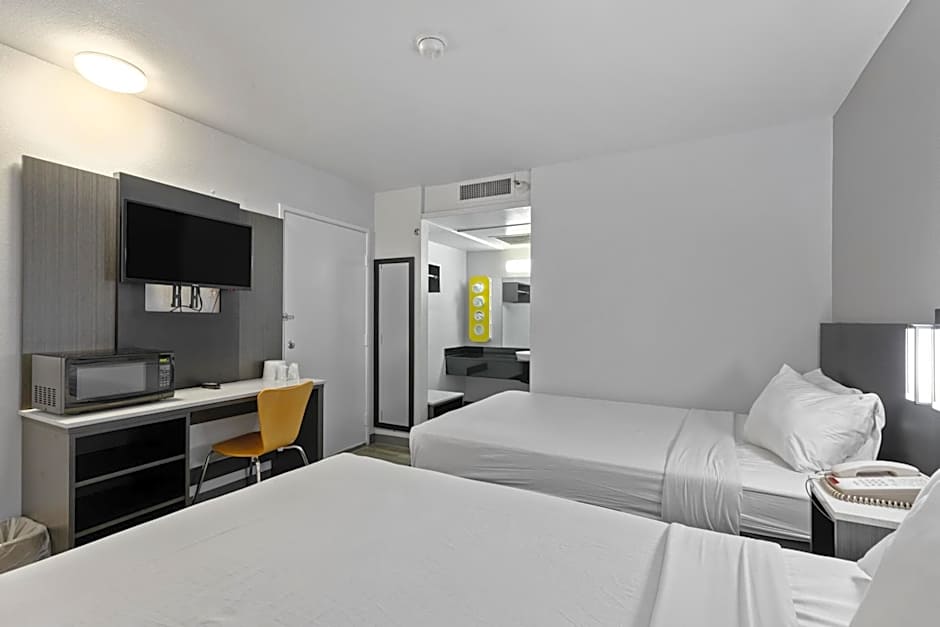 The hotel offers a variety of room types including Queen Rooms for single occupancy, Deluxe Quadruple Rooms, Queen Rooms with Disability Access, and Quadruple Rooms. Rooms accommodate either 2 adults and 1 child or 4 adults and 3 children. Bed sizes range from Queens to Doubles, with rooms typically 205 sqft in size. Smoking is not allowed in any of the rooms at the Motel 6-Oceanside, CA.