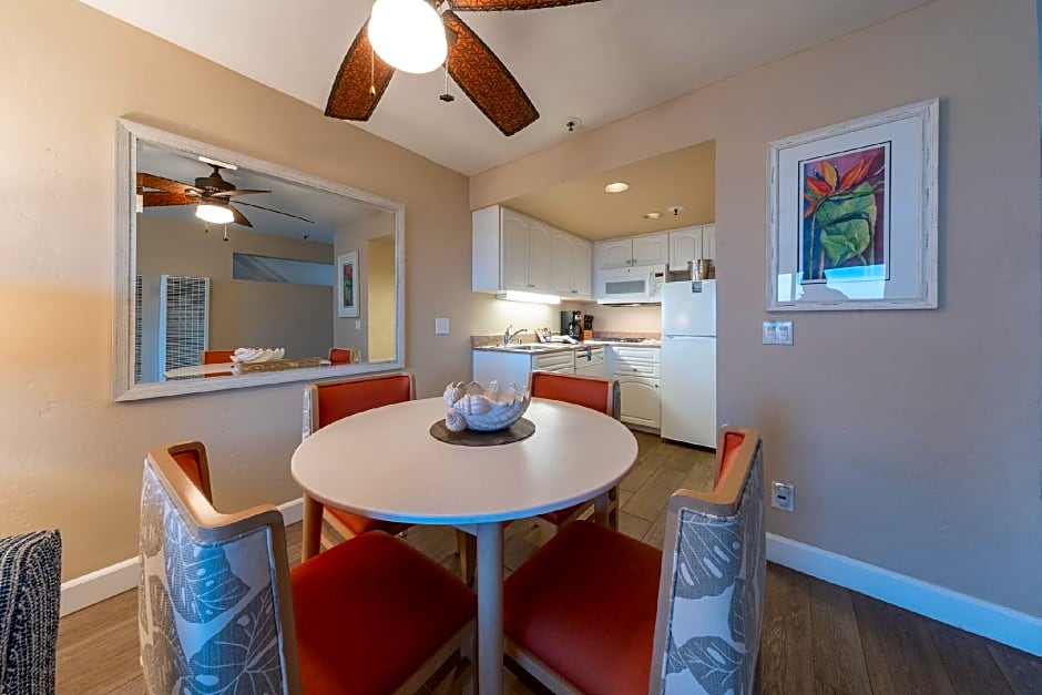 This nonsmoking suite is equipped with convection a microwave, 1.5 bathrooms, a balcony or patio and free WiFi. Please note: This is a 2-story suite, where stairs are required. This suite sleeps 6 guests. This suite is equipped with a ceiling fans in the bedroom and kitchen. Air-conditioning is not available. Shampoo is only provided upon guest request in all units.