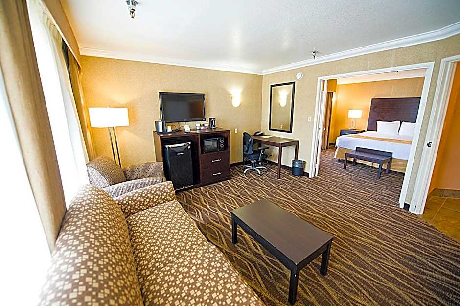 Hotel d'Lins Ontario Airport offers a variety of rooms including Standard King Rooms with king-size beds and Suites with jetted tubs, courtyard views, and multiple bed options. Most rooms accommodate 2 adults and 1 child, with some exceptions like the Standard Double Room that can accommodate 2 adults and 2 children. Smoking is not allowed in any of the rooms. Room sizes range from 334 sqft for standard rooms to 495 sqft for Executive King Suites with spa baths.