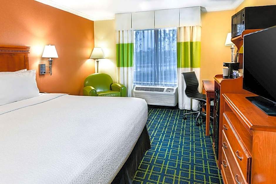 The SureStay Hotel by Best Western Ontario Airport offers rooms with 1 King Bed, 2 Queen Beds, or accessible options with mobility accessible features. Smoking is not allowed in any of the rooms. The rooms accommodate either 2 adults and 1 child or 2 adults with no children. Bed sizes include King or Queen, and the room sizes are approximately 301 sqft.