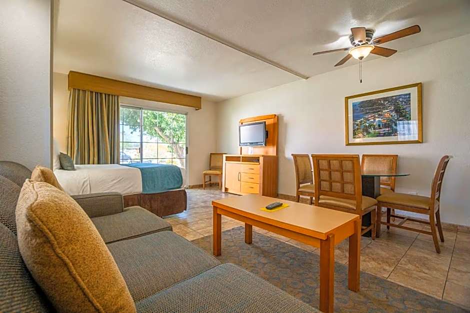 Desert Breezes Resort invites travelers to soak up Palm Desert’s sun with a playful tilt. The outdoor heated pool shines under the desert sky, perfect for a refreshing dip after a day exploring the area or swinging a club on the on-site golf course. A playground keeps younger guests entertained, while tennis, mini golf, and spa options (extra charges) add a generous mix of activities to an easygoing desert getaway.