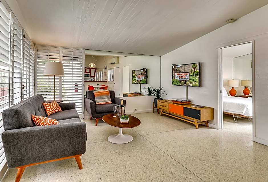 Traveling with friends or family? The hotel offers spacious accommodations such as deluxe studios and suites that comfortably sleep groups of up to eight adults and five children. And furry friends are welcome on the property too, so your canine companions can join in on the vacation fun (additional charges may apply). Whether you're here for adventure or relaxation, the Del Marcos Hotel creates a memorable Palm Springs experience—with friendly hospitality, scenic views, and all the essentials you need for a sunny getaway.