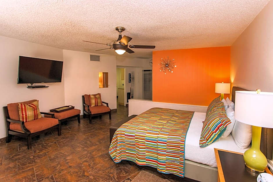 Offering a kitchenette, this studio is tucked away for complete privacy. It includes a comfortable seating area with a sofa bed and 2 flat-screen TVs. The year around heated pool is just steps away.