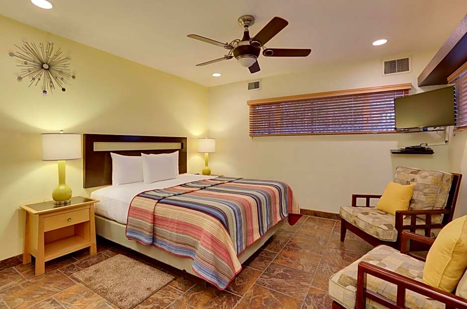 Located in Palm Springs, California, the Desert Riviera Hotel sits at 610 East Palm Canyon Drive, about 2mi from the city center. The setting features garden and mountain views, a sun-soaked pool area, and barbecue-friendly outdoor space, with easy access to on-site parking and complimentary Wi-Fi. For those seeking activities, options like a golf course, horseback riding, and massage are available for an extra charge.