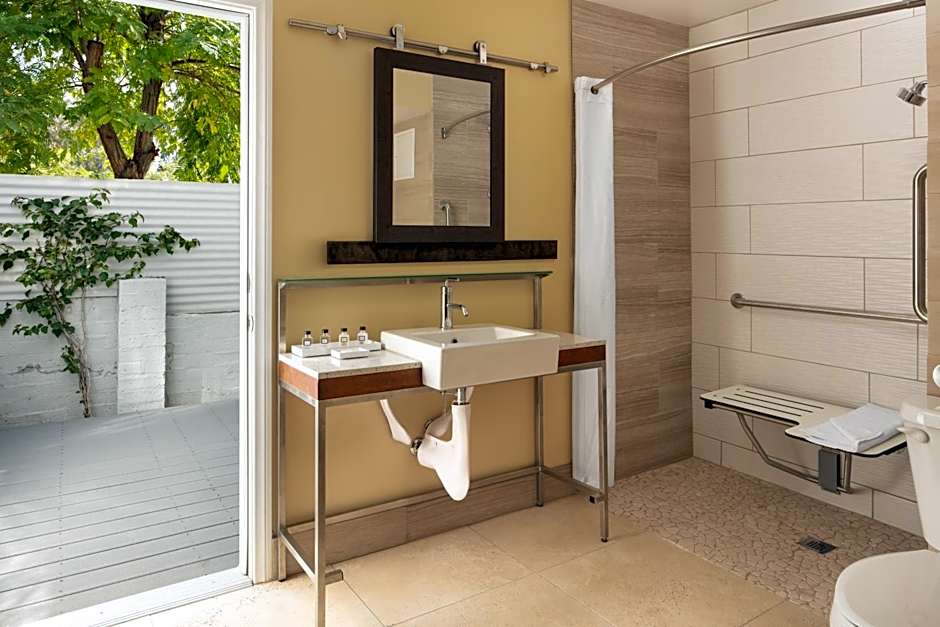 After a day of exploring the vibrant city of Palm Springs, you'll be delighted to come back and relax by the sparkling outdoor swimming pool at the Movie Colony Hotel. Take a refreshing dip in the water or simply lounge on the comfortable poolside chairs and soak up the warm California sun. The pool is heated, making it perfect for year-round enjoyment. With a shallow end, it's also family-friendly for those traveling with children. And to add to the ambience, the pool offers picturesque views of the surrounding area, providing a truly relaxing and serene atmosphere.