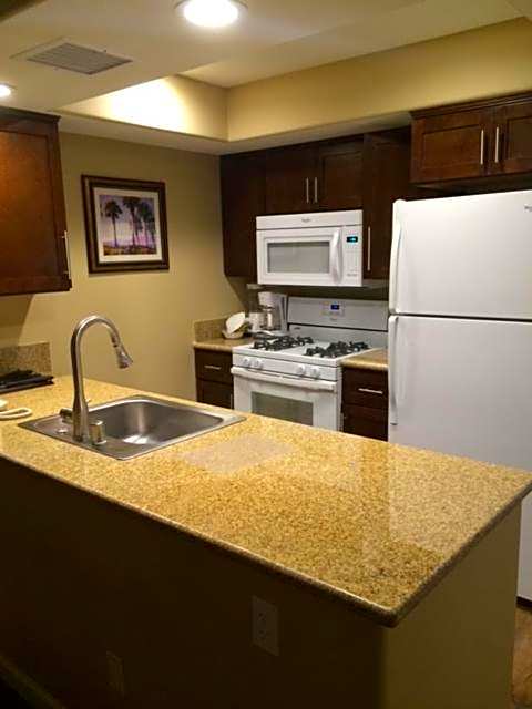 Modern updated unit with full kitchen. Large balcony with chairs and table. Landscaping and general grounds were well kept and tidy. Good value for the area. The resort was not grossly over the top but comfortable especially for older adults. The pool and spa had ADA chair lifts in addition to steps to enter the pool/spa.