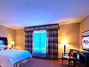 The Hilton Garden Inn Palmdale offers King Rooms with Bath Tub that have disability/hearing access. These rooms have a double occupancy, are non-smoking, and feature a King size bed. The hotel also provides Evolution Queen and Evolution King Rooms, which are quadruple occupancy rooms with non-smoking options. The Evolution Queen Room has two Queen size beds, while the Evolution King Room has one King size bed.