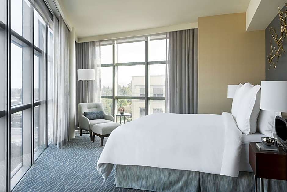 This suite is located on the 2nd to 10th floors and features views of the Santa Cruz Mountains. It includes a full marble bathroom with a deep soaking tub, a flat-screen TV and a DVD/CD player.
