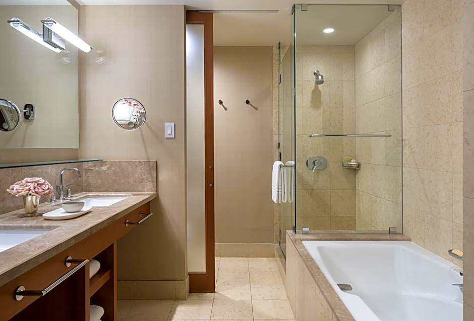 This room is located on the 6th floor with views of the San Francisco Bay Area. It includes a full marble bathroom with a deep soaking tub, a 42-inch flat-screen television and a DVD/CD player.