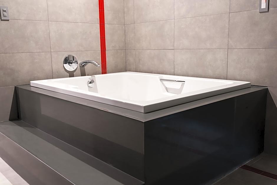 The rooms looked great on the inside, with a very cohesive decoration scheme and nice furniture. There was a good amount of space in the 2-Queen room, with plenty of storage, a usable desk, and a separate sitting area. The King Suite (now listed as the Romantic Jacuzzi Suite) was amazing.