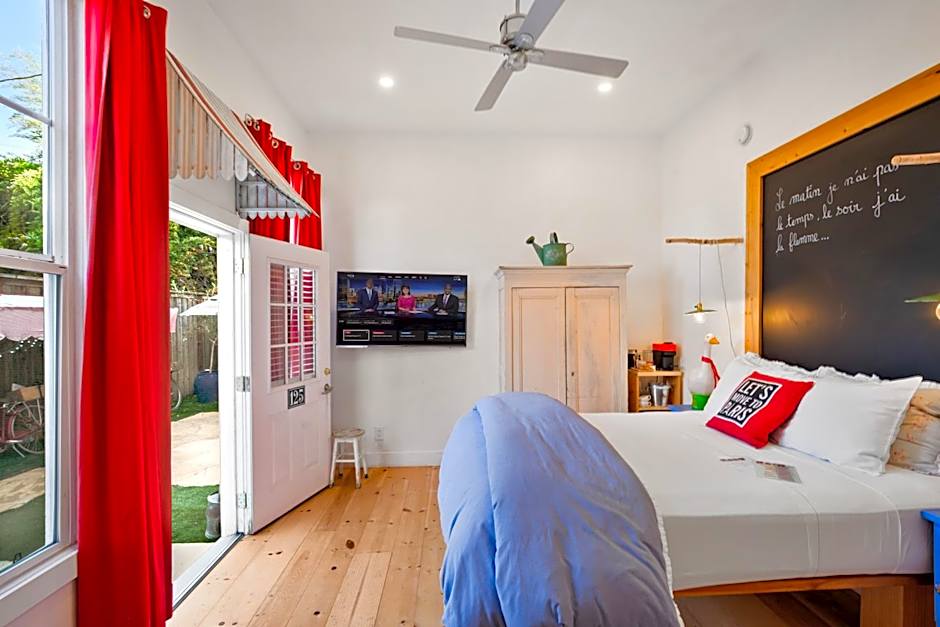 One of the nicest places my family has stayed at in the US! My family of five (with three teens) stayed in the bright 2-bedroom cottage for five nights, which was so charming. We appreciated the tasteful, eclectic French themed décor which made the cottage feel homey and chic. There was plenty of space to spread out and to store & organize our belongings. The highlight was super comfy beds, with fluffy duvets, crisp sheets and proper pillows. We slept very well. The cottage is also very well appointed with a kitchen/lounge/dining area downstairs and bedrooms and bathroom upstairs (loved the clawfoot tub/shower and fluffy towels). Beautiful outdoor area (although weather didn't allow us to use it). My husband and I enjoyed the yummy crepes and coffee breakfast most days, which was convenient and delicious. Location is easy walking distance to downtown. We didn't really use the large screen tvs (3 in total - one in the lounge area and one in each bedroom), but wanted to point these out!