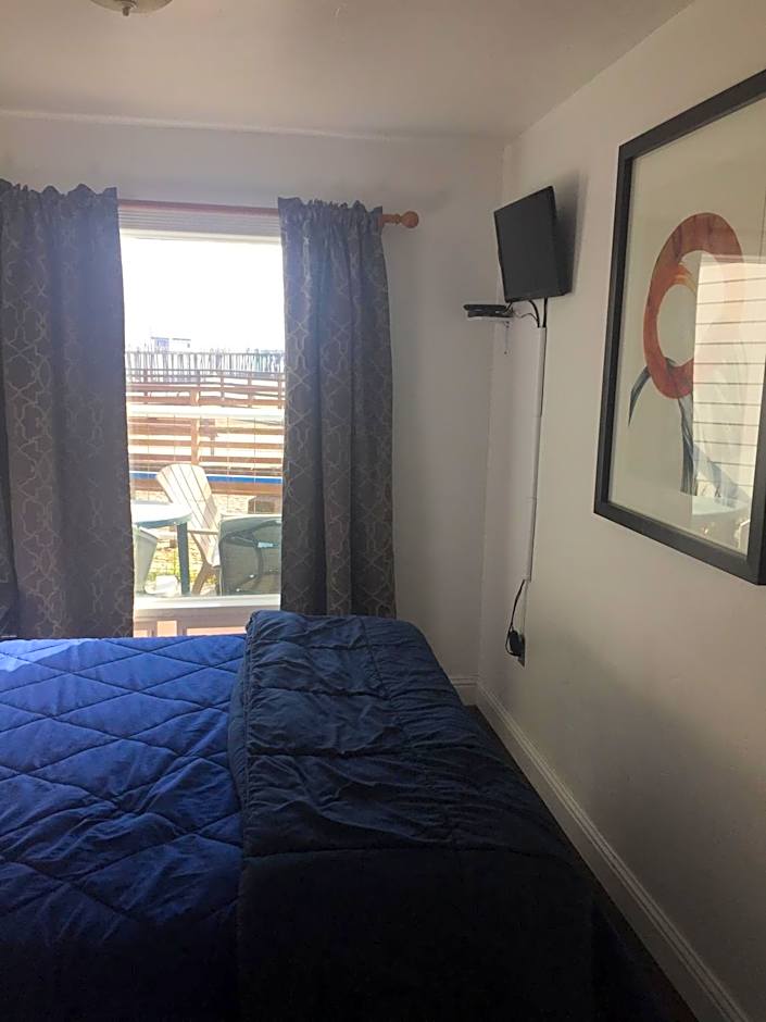 Welcoming staff who made great restaurant reccomendations Always helpful and wants you to have a great experience. Nice sunset when the sun skyward appears through the clouds Games entertainment ice cream restaurants boardwalk and beach are 500 feet or less from your room. Be sure to reserve a 2nd floor room to have the best views The heater in the room works great Parking on-site safe and included in cost Nice outdoor sitting area for late night cards etc.