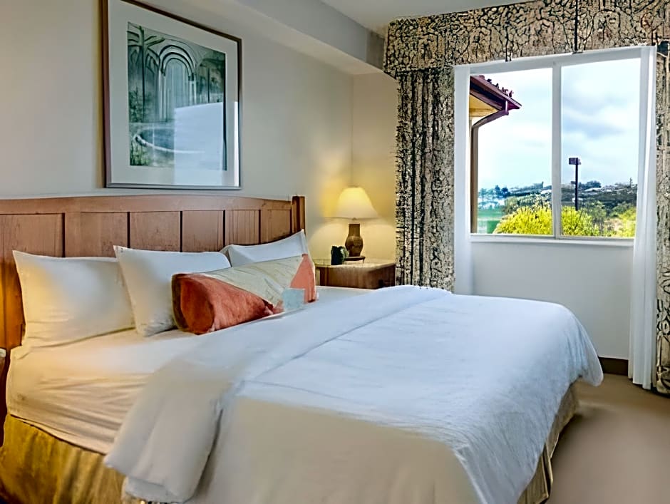 Garden patio, pool/lawn view, microwave, refrigerator, complimentary WiFi, work area This spacious Deluxe Room offers a garden patio overlooking the pool or lawn area, with chairs for enjoying breath-taking coastal sunsets. The room features our king-sized Garden Sleep System adjustable bed with comfortable bedding. Microwave, refrigerator and Keurig® coffeemaker are also included. Stay productive at the desk with ergonomic chair and complimentary WiFi. Smart entertainment features include a flat-screen TV with premium cable channels and an alarm clock radio with an MP3 port. There is also an elegant bathroom with granite countertops and signature bath amenities.