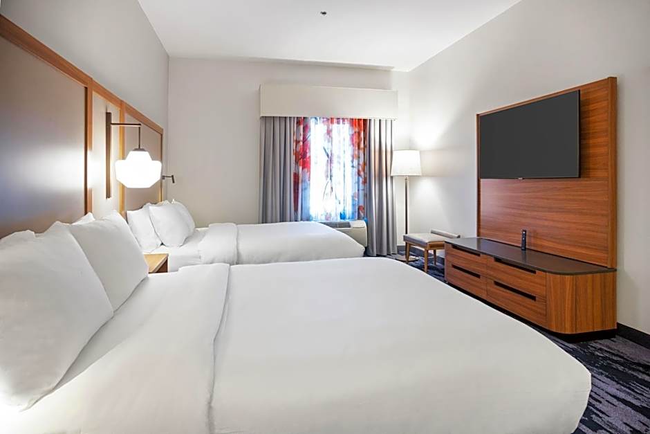 The Fairfield Inn & Suites Rancho Cordova offers Queen Rooms with Two Queen Beds, Junior Suites, King Rooms, and King Rooms with Sofa Beds. Smoking is not allowed in any of the rooms. The Queen Rooms and King Rooms both accommodate up to 4 adults and 3 children, while the Junior Suites and King Rooms with Sofa Beds accommodate up to 3 adults and 2 children. The Queen Rooms have two double beds, the Junior Suites have one sofa bed and one king size bed, and the King Rooms have one king size bed.