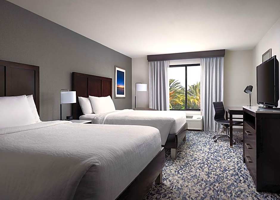 The Hilton Garden Inn Los Angeles/Redondo Beach offers a variety of room types including Queen Rooms with Two Queen Beds and King Rooms. All rooms are non-smoking and have accommodations for 2 adults and 1 child or 4 adults and 3 children, depending on the room type. Bed sizes vary with options for 2 Queen beds or 1 King bed. Some rooms also have disability access or feature amenities such as a luxury bathroom or a roll-in shower.