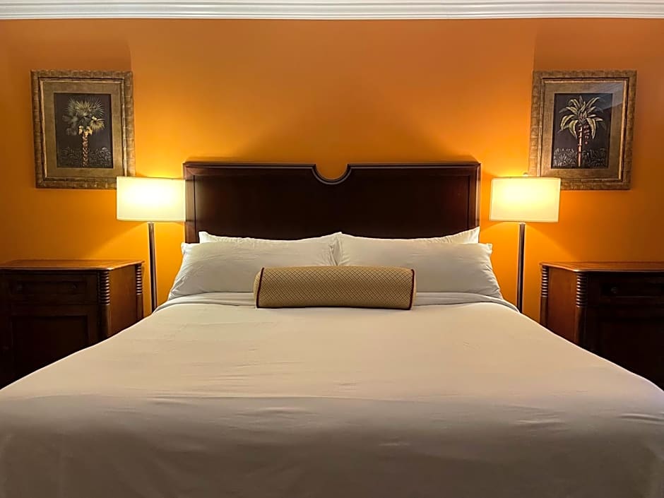 The hotel offers a variety of room options including King Studio Suites, Studio Suites with Two Queen Beds, Queen Rooms with Two Queen Beds, and Queen Rooms. All rooms are non-smoking and can accommodate a range of guests, from 2 adults and 1 child to 5 adults and 4 children. Bed sizes include king and queen, with some rooms offering mobility access and grab bars in the bathtub for accessibility purposes.