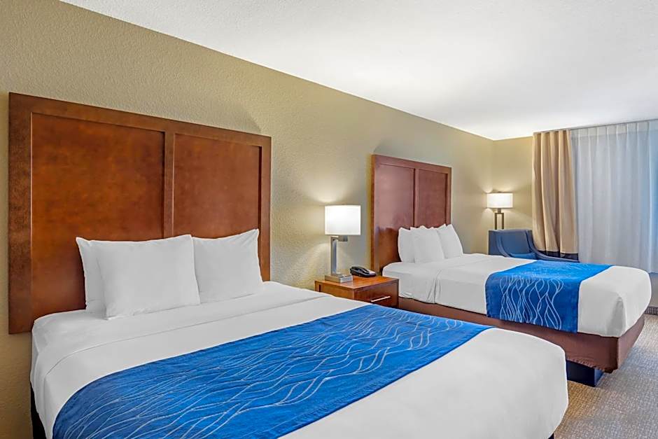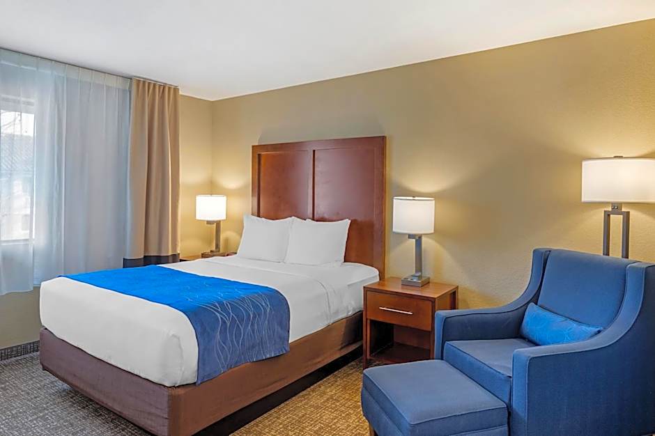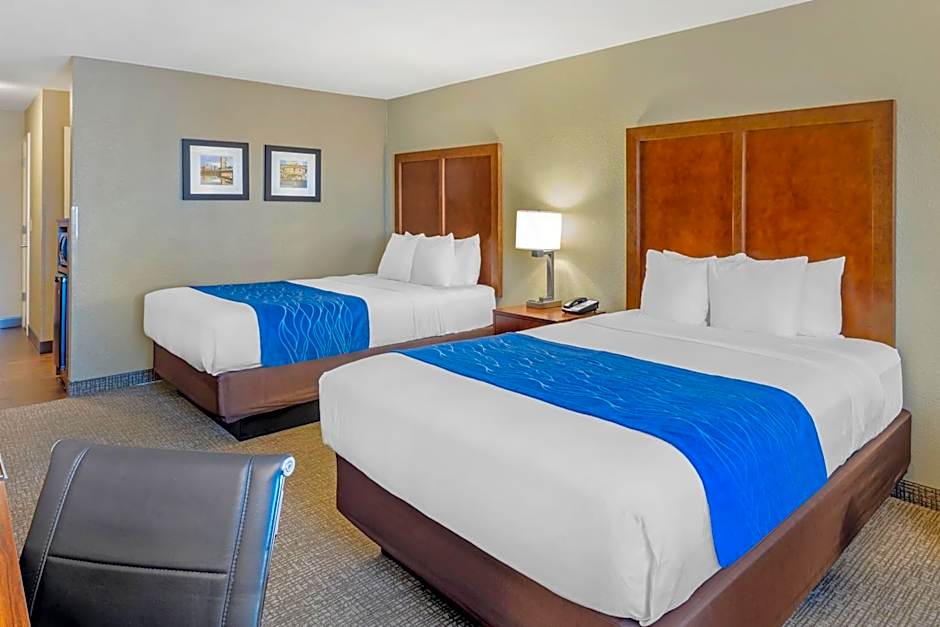 The Comfort Inn & Suites Rocklin offers a variety of room types including suites and standard double rooms. The rooms accommodate between 2 and 4 adults, with some also accommodating children. All rooms are non-smoking and have different bed sizes, including King or Queen size beds. The suite rooms are larger in size, averaging around 388 sqft.