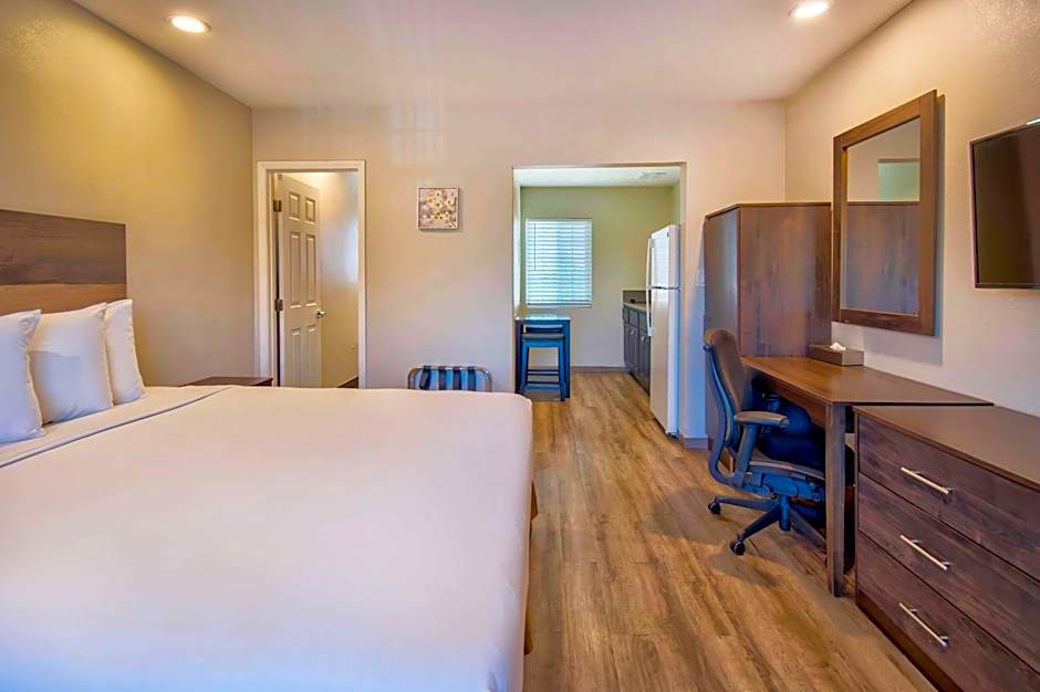 Loved that they had a kitchen and spacious they have one without a kitchen and I preferred with the kitchen and it was very clean and the shower was spacious with the kitchen. Staff was excellent I kept booking my room and they were very nice and understanding