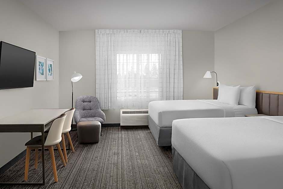 The TownePlace Suites Sacramento Cal Expo hotel offers a variety of room types including Queen Studios with two queen beds, Queen Studios with a sofa bed, One-Bedroom Queen Suites with a sofa bed, and Two-Bedroom Suites. None of the rooms allow smoking. The room sizes range from 334 sqft to 667 sqft. The occupancy ranges from 3 adults and 2 children to 5 adults and 4 children.