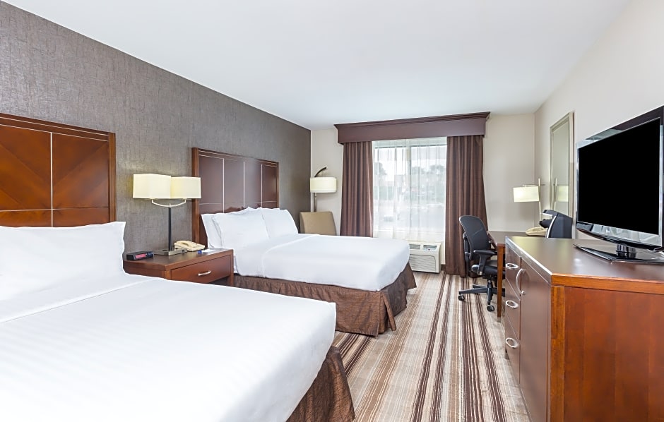 The Holiday Inn Express San Diego - Sea World Area offers various room types, including Queen Rooms with Two Queen Beds, Queen Suites with Two Queen Beds, and Standard Rooms. The rooms have an average size of 323 sqft and can accommodate 2 to 6 adults, with additional space for 1 to 4 children. Smoking is not allowed in any of the rooms. The beds provided are either Double or Queen size, with the Queen Suites also offering a Sofa Bed.