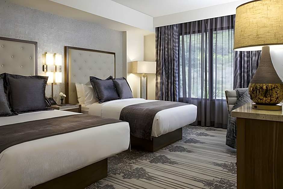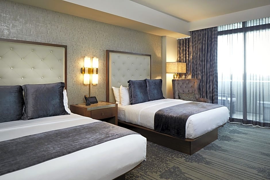 I stayed at this hotel for San Diego Comic Con. The property is less than 10 minutes away from the nearest Comic Con shuttle stop, which is convenient. The hotel staff were professional, and they have a convenient luggage storage system at the front desk. The hotel looked modern and spacious. The rooms Eeee giant and pretty well-kept. I especially liked that the room sink was separate from the bathroom, which was great when sharing the room. The room had a mini refrigerator. The patio overlooking the pool was a nice addition. The public pool area had plenty of seating and a hot tub. The gym was clean and ready for use. Overall there were several comfortable places to hang out with friends at this hotel.