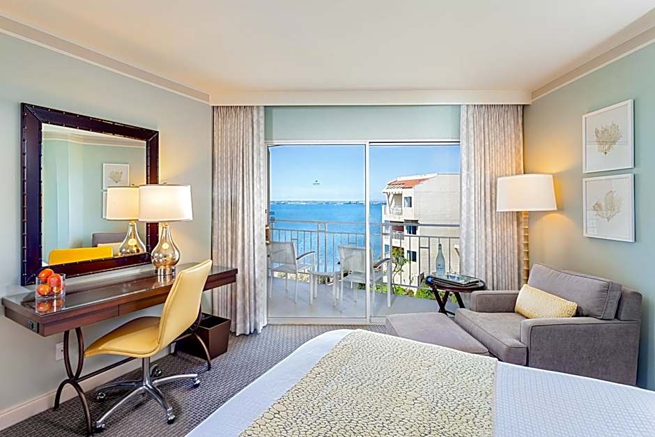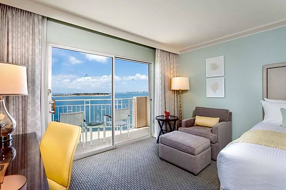 Partial Bay View rooms offer a view of Coronado Bay from a private furnished balcony. The rooms offer free WiFi, luxury bath amenities, Keurig coffee makers, and deep soaking tubs with separate glass shower stall in the private bathroom.
