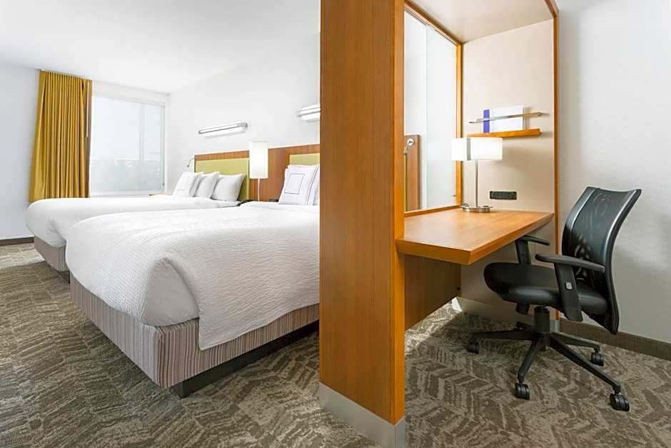 The SpringHill Suites by Marriott San Diego Mission Valley offers King Studios, King Studios with Sofa Bed on High Floors, and Queen Studios with Two Queen Beds and Sofa Bed on High Floors. None of the rooms allow smoking. The King Studios and King Studios with Sofa Bed on High Floors accommodate 4 adults and 3 children, while the Queen Studios with Two Queen Beds and Sofa Bed on High Floors accommodate 5 adults and 4 children. The rooms feature either a King size bed or two Queen size beds, with the addition of a sofa bed in some rooms. Room sizes range from 280 to 334 square feet.