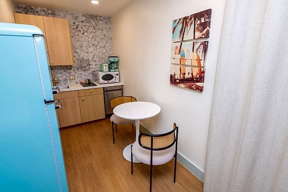 Our studio kitchenette was perfect for what we needed for our 4 day getaway. We wanted to be able to make our own breakfast and the little kitchen gave us flexibility with our dining options. Nice upgrades in the unit. The location is perfect, super close to both the bay and a short walk to the beach.