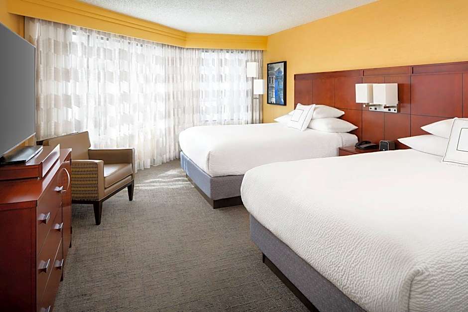 The Courtyard by Marriott Fisherman's Wharf offers a variety of room types. They include Queen Rooms with King size beds and sofa beds, accommodating 3 adults and 2 children. There are also Queen Rooms with Two Queen Beds for 4 adults and 3 children. Additionally, they have King Rooms with King size beds and sofa beds, accommodating 3 adults and 2 children. Smoking is not allowed in any of these rooms.